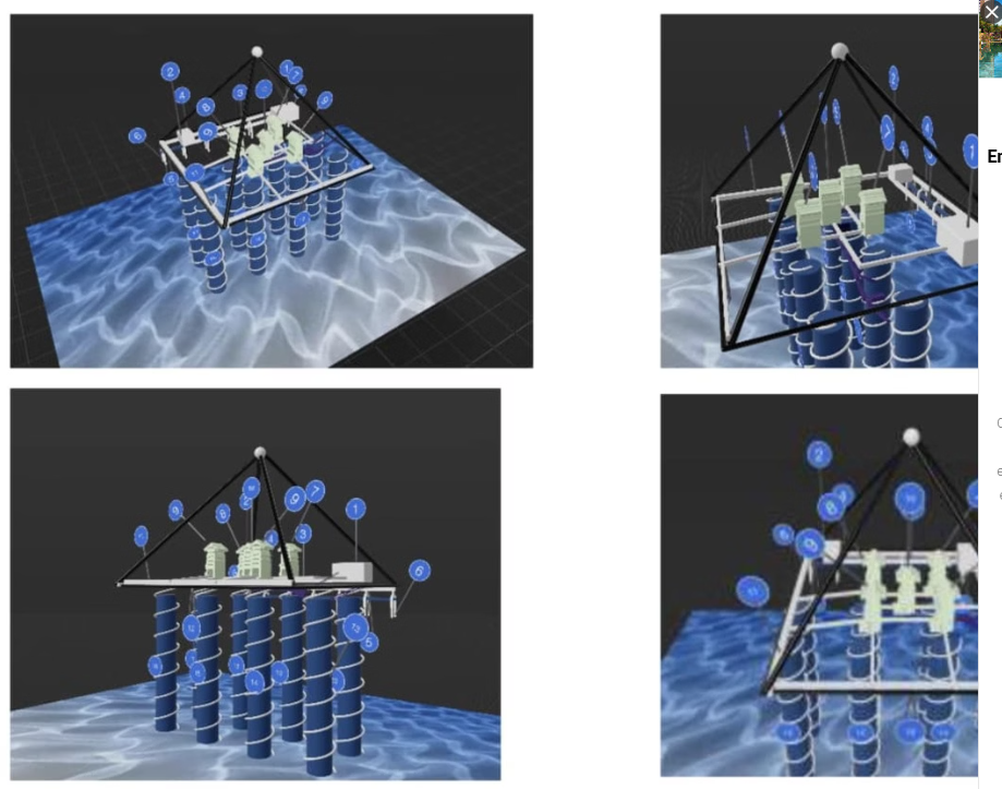 Abaixo dessas cinco estruturas, foram identificadas oito formações cilíndricas que aparentam ser poços verticais, ocos internamente e rodeados por caminhos espirais descendentes. Esses oito poços, alinhados verticalmente e dispostos em duas fileiras paralelas no sentido norte-sul, estendem-se até uma profundidade de 648 metros.